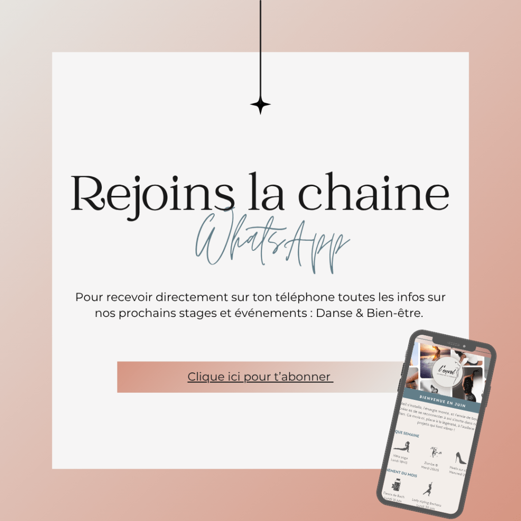 Parce que nous avons toutes des envies et des besoins différents, L’envol vous invite à vous évader et à vous reconnecter à travers des pratiques variées : danse, yoga, bien-être, et lâcher-prise. Dans un cadre chaleureux et bienveillant, nous mettons l’accent sur des valeurs de transmission, de partage et d’épanouissement personnel. Venez nourrir votre esprit, votre corps, et votre âme, tout en prenant un moment pour vous.